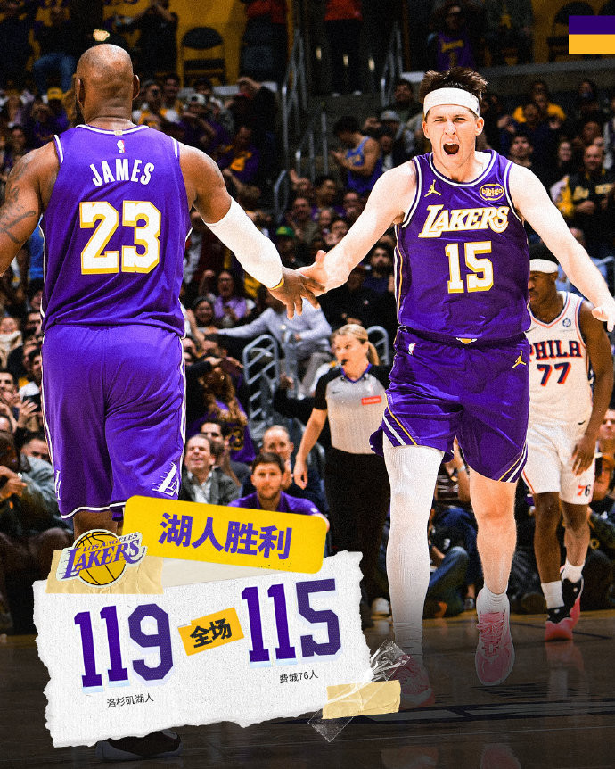 在结束八连客之旅后,湖人今天回到主场以119-115力克76人,收获两连胜,战绩来到31胜19负,追平火箭,暂时继续排在西部第四。而76人的5连胜被终结,战绩变成29胜22负,继续排在东部第六。湖人上半场最多落后14分,但末节完成反超,而且一度领先到16分,虽然最后时刻又被76人追上,最终也有惊无险地战胜了76人。